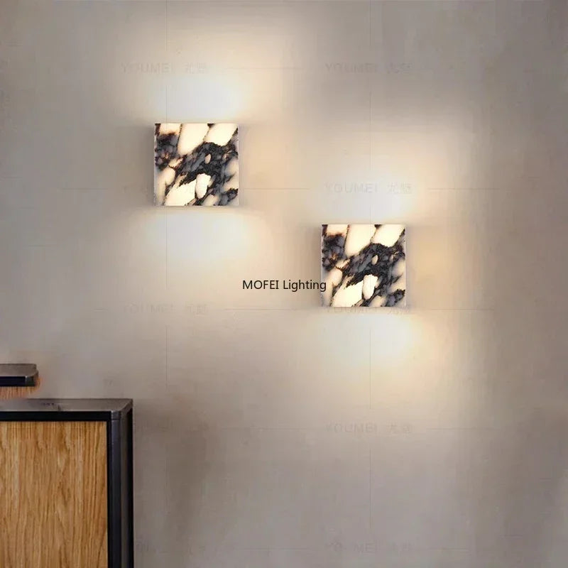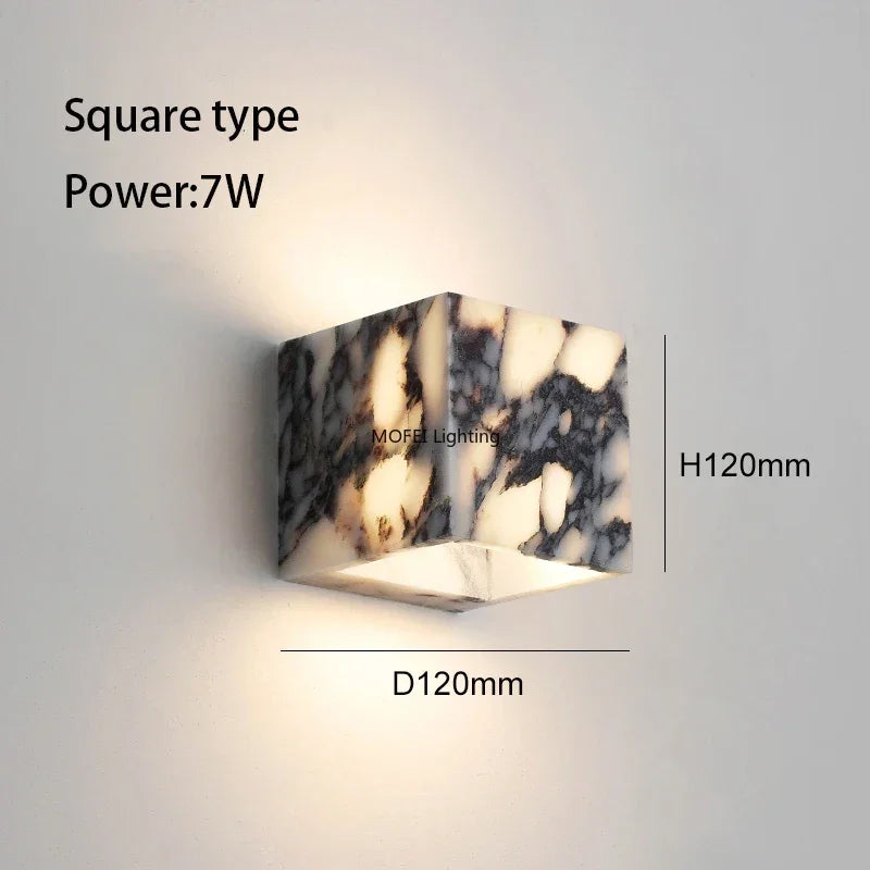 This marble LED wall lamp is not decorative noise. It is a material-driven lighting object that elevates walls through light, stone, and shadow.