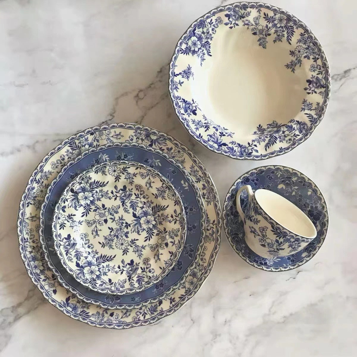 Add timeless charm to your table with our Vintage Blue and White Ceramic Collection, inspired by classic floral motifs and retro elegance. Each piece—whether a dinner plate, soup bowl, or coffee cup—is crafted from high-quality ceramic and finished with intricate blue floral patterns on an ivory base.